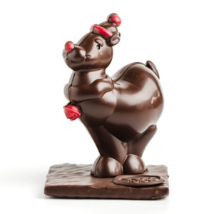 Plongez dans un arc en ciel de saveurs avec ces adorables lapins et coqs, garnis de petits œufs en chocolat noir, au lait et blanc aux cœurs fondants et croquants.